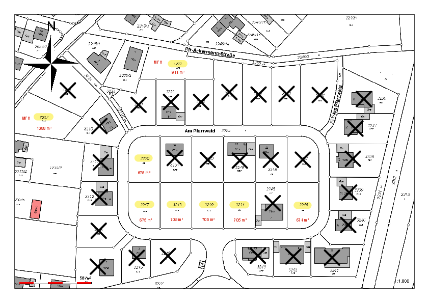 Die Bauplätze werden mit einer Bauverpflichtung für ein Wohnhaus mit mind. 100 qm Wohnfläche verkauft.